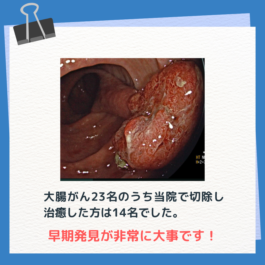 また、大腸癌を当院にて切除した方が1名、他院へご紹介した方が1名おられました。